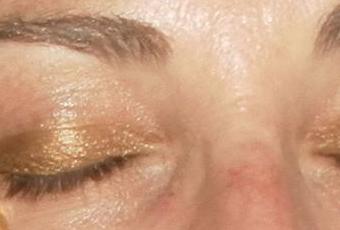 He cogido una sombra amarilla y me la he dado por parte exterior del ojo y cuenca a fin de difuminar el color dorado y que no se viera la diferencia. (decir que aunque al natural se ve todo tonos dorados, en la foto parece como verde)