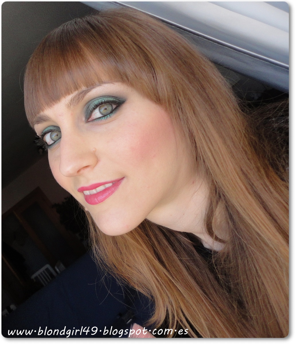 Hola amorcines ¿qué tal habéis pasado el fin de semana? ¡Espero que muy bien! y que no se hayan chafado planes por haber tenido mal tiempo, que eso es un fastidio... en Mallorca ha hecho bastante frío :S aún así el sábado nos paseamos bastante, estuvimos por un centro comercial y entramos a un montón de tiendas :D me lo pasé genial viendo todo lo que había y al final nos volvimos a casa con un quemador y varios aromas que me compró mi chico (jijij por fin tengo uno!!!), compré algunas cositas para mi Geme, mi chico compró una bolsota enorme de chuches y luego nos paramos en el Lidl y cogimos minipizzitas, patatillas y porquerías varias para cenar y luego ver la TV :). Luego el domingo queríamos ir a la Fira del Fang pero no hacía demasiado buen día, así que ya nos quedamos en casa viendo series.. Para los ojos he usado sobre todo pigmentos, últimamente me he aficionado bastante^^ y no resultan taaaan engorrosos, sí que tardo algo más de tiempo porque no quiero ensuciar nada pero si veo que tengo tiempo siempre procuro usarlos :)LOOK ROSTRO COMPLETO: PRODUCTOS EMPLEADOS: Rostro:- Base de maquillaje Photo Finish de Catrice (me encanta, aquí tenéis la reseña)- Polvos compactos translúcidos, ed. limitada Class of 2013 de Essence- Colorete Hot Mama! de The Balm (aquí tenéis la reseña)Ojos:- Eye shadow pen C03 virgin forest, L.E. Coolibri de Catrice- Paleta Naked, sombras Virgin y Naked- Pigmento shade 3 de MUA- Pigmento 01 Jacobs protection, L.E. Breaking dawn Twilight saga de Essence- Lápiz de ojos negro de YR- Lápiz de ojos waterproof 05 turquoise de YR- Gel eyeliner negro de Maybelline- Eyeko magic mascaraLabios:- Labial nº210 Pinkadilly circus de Catrice