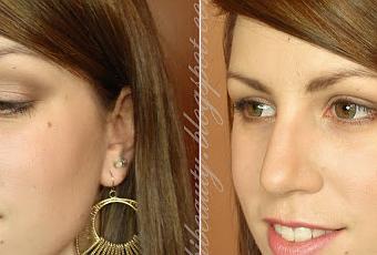 Como veis se percibe un leve toque de color en los ojos y en los labios pero parece que el resto del rostro va desnudo. Lo que he hecho con este maquillaje es aportar un cierto toque de color topo a los ojos para darles esa profundidad que perdemos cuando no llevamos maquillaje y, en mi caso, para disimular el párpado caído y hacer que parezcan más grandes. Aunque en estas fotos me veáis con las lentillas puestas, en el vídeo podéis ver el maquillaje en mis ojos marrones naturales de toda la vida jejeje.