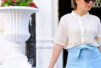 BABY BLUEAunque el verano y sus cálidas temperaturas se nos van quedando ya un poco lejos, no he querido comenzar a desempolvar todas las chaquetas, jerseys y capas para hacer frente a la nueva estación. Por ello, mi propuesta de hoy brinda un completo homenaje a una de mis últimas obsesiones cuando los tristes tonos otoñales empiezan a aflorar: los tonos pasteles. Y, es que es muy curioso, por lo general no soy una persona que en la época estival haga uso de los tonos bebé, los rosas pasteles y toda esa gama, lo mío es más de fuertes constrastes. Pero hay algo en el aburrido otoño londinense que me causa querer llevar mucho más a menudo esta paleta de colores: un azul bebé, un rosa palo, un tono lila, da igual...¡todo me sirve! Así que hoy, recogiendo de sus calles y de sus fachadas coloreadas toda la inspiración, intento dejar a un lado el básico negro, los míticos tonos marrones y el ansiado gris para poder seguir experimentando e incluyendo en mi fondo de armario prendas con color para la nueva temporada. Tal y como ya lo hice con un bonito abrigo que combina el blanco con violeta, un chaleco de cashmere en un tono beige y recientemente esta falda azul bebé que casa a la perfección con el maxi vestido crema que llevo como blusa.