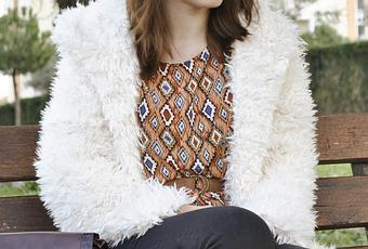 Últimamente tengo adoración por los estampados étnicos que combinan colores tierra. Encontré de casualidad esta blusita en Romwe y su particular estampado me llamó muchísimo la atención. Para que quedase más ceñida añadí un cinturón a la altura de la cintura y entre tonos tierras y algún que otro ligero toque de color vi la oportunidad para incluir mi abrigo blanco con orejitas de oso, así el look adopta una forma más dulce y personal que espero que os guste.