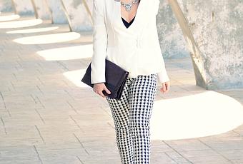 Algo clásico para hoy con una combinación que nunca falla, blanco-negro, a la cual quise darle otro aire incluyendo el famoso estampado de pata de gallo. Me pareció una interesante idea incluir esta chaqueta en el outfit porque a simple vista parece tener un corte clásico y al girarte...voilá! unos divertidos volantes adornan la parte trasera aportando un toque totalmente inesperado...¿Qué os parece?