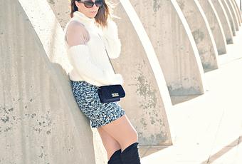 Oficialmente se trata de mi primer look de 2014. Terminé y empecé el año con un gripazo que me ha hecho estar en casa varios días y tal como os dije en facebook esa era la razón por la cual últimamente no habían actualizaciones... Para hoy rescato mi suéter blanco de cuello alto y hombros descubiertos, ¿recordáis este post? Después de ver dos opciones de looks, sin duda, creo que aporta a los outfits un toque muy personal y chic, nunca había visto nada igual. Como es costumbre, un toque de color no podía faltar, esta vez la falda se encarga de ello con un estampado en el que destaca la mezcla de tonos azules y verdes. El resto del outfit lo completan mi nuevo mini bolsito de Jollychic y unas botas altas que combinan a la perfección...