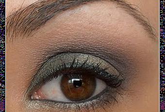PómulosBronceador Mate Lóreal OjosPrebase art-deco por todo el ojoSombra 471 Inglot Verde militar en el primer tercio del parpado móvil Sombra 419 Inglot Verde Oliva en el resto del parpado móvilSombra 434 Inglot Gris metalizado marcando la "v" externa y subiéndola por la bananaSombra 454 Inglot Gris helado delineando la parte inferior del ojoSombra vainilla nacarada (paleta 180) para iluminar el arco de la cejaDelineamos la waterline inferior y superior con Eyerliner Essence Gel Verde elctrico y también para realizar el delineado superior.