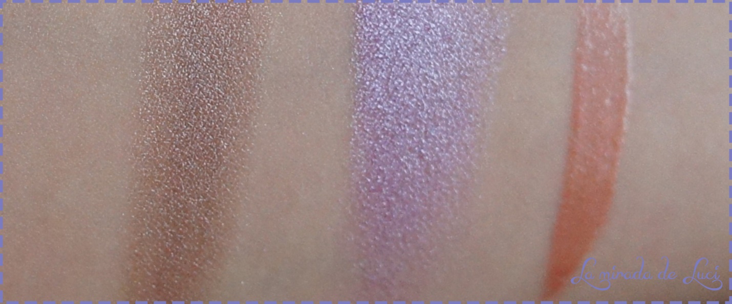 De izquierda a derecha, he usado el tono WARM TAUPE con la sombra de Make Up Forever, la Me 554. El tono BODACIOUS está representado por una preciosa sombra de Sleek, de su paleta Monaco, la Lotus Flower. Y el tono POTTER'S CLAY está representado por un labial de Starlooks, que venía en una Lipmonthly