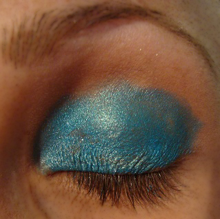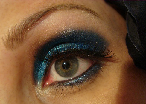 Justo encima aplico sombra azul eléctrico. Luego aplico en la linea de abajo, la misma sombra y difumino.