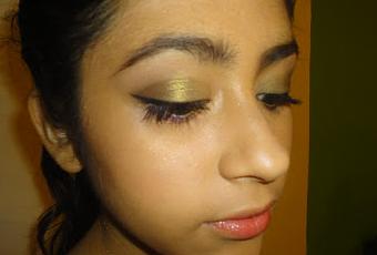 Es un look que puede ser utilizado en pieles oscuras y claras. Con dorado, marrón y un toque de lila.
