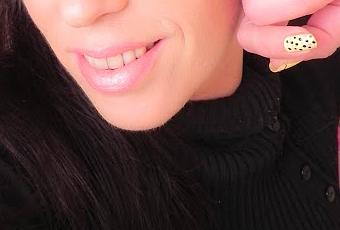 Los lacitos están hechos con un rotulador para uñas de Maybelline y los topos, con esmalte negro y rosa. Finalmente, apliqué un rinhestone rosa también en los lacitos.