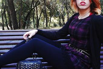 Un look amoroso, juvenil y arriesgado, marcando la diferencia con un poco de amor y fantasía, sin dejar de lado la personalidad. He querido combinar un vestido pantalón tartán ciruela con ganchillo negro en los extremos del pantalón, para dar un aire diferente y desenfadado al look.