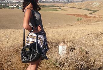 Para las sandalias, estas de cuña con el mix negro con suela blanca que como tod@s ya sabemos han sido la estrella de este verano. No nos olvidamos, de un bolso estilo bandolero.