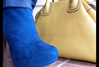 Llevo unos vaqueros de hace un par de temporadas, el suéter semitranparente en verde azulado de Sanha, con tachuelas en los hombros, los botines en verde azulado de Stradivarius y para darle n toque distinto un bolso amarillo