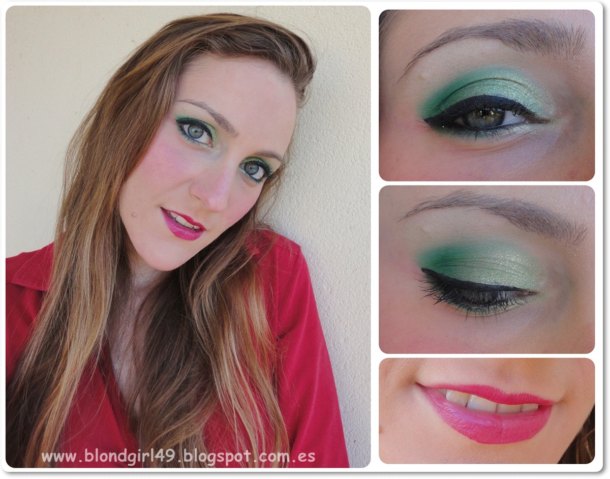 Como podéis observar en los ojos he usado tonalidades verdes muy potentes de las paletas de sleek que he adquirido hace poco (una comprada y la otra regalito de mi niña Lucía). El colorete que llevo tampoco pasa desapercibido por lo subidito que tiene el tono, todavía tengo que acostumbrarme a usarlo porque me quedó el color demasiado intenso. Y en los labios también una nueva adquisición de Ebay que espero enseñaros muy prontito la entrada correspondiente.