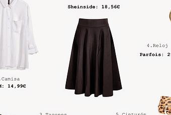 Look 1: Si no sabes cómo combinar una falda midi una opción que nunca te va a fallar es conjuntarlo con una camisa blanca y unos tacones negros. Los pequeños toques puedes dárselos con los accesorios como un reloj dorado, un cinturón con print atorado a la cintura...