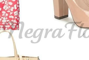El vestido es de Mango, en manga corta con estampado floreado, cuello barco, detalle drapeado y cordón ajustable; y está confeccionado en viscosa 100%, con forro en poliéster 100%. Los zapatos son el modelo Helga Nude, de Ravel, de corte sintético y forro en piel y cuero, y con una altura de tacón de 11 centímetros. El bolso es el modelo Madeline, de David Jones, con bandolera regulable y amovible para poder llevar cruzado, de volumen generoso.