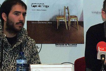 La jovencísima compañía Valquiria Teatro ha presentado esta mañana en el Teatro Zorrilla la obra con la que comienza su andadura, “El premio del bien hablar” de Lope de Vega. Dos de los actores del elenco, Noemí Morante y Bruno Calzada, junto al director Carlos Martínez- Abarca y el coreógrafo Ion Garnika, han sido los encargados de presentar y valorar el trabajo realizado, que se estrenará los días 27 y 28 de Enero.