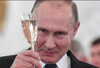 El presidente ruso, Vladimir Putin, brinda con los asistentes después de una ceremonia de premiación estatal para el personal militar que sirvió en Siria, en el Kremlin en Moscú