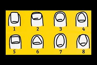 Si no puedes encontrar la forma exacta, entonces elige la que se parezca más al tipo de uñas que tengas. Cuando lo hayas encontrado, lee la descripción más abajo y averigua si coincide con tu personalidad: