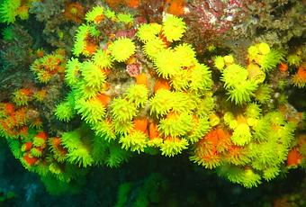 ¡El solo nombre hace que quieras empezar a bucear en Cabo Verde! El sitio consiste en un paseo por una cueva cuyas paredes están cubiertas de coral amarillo.
