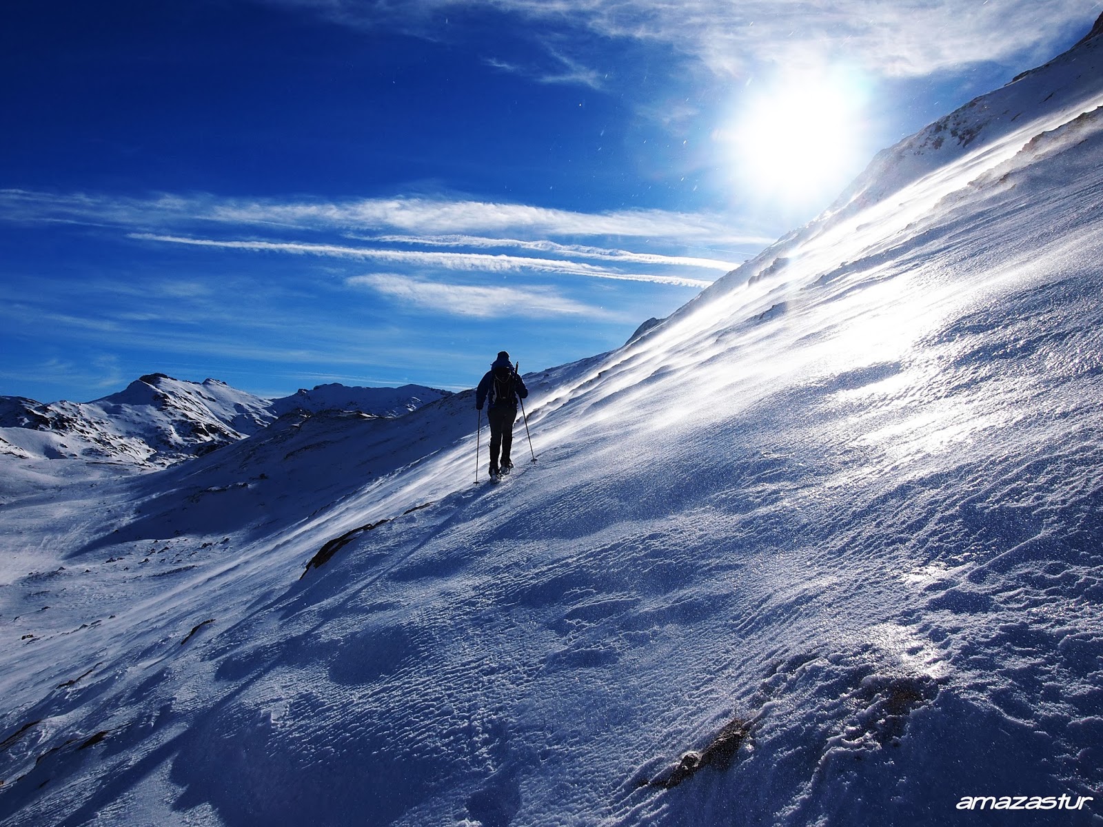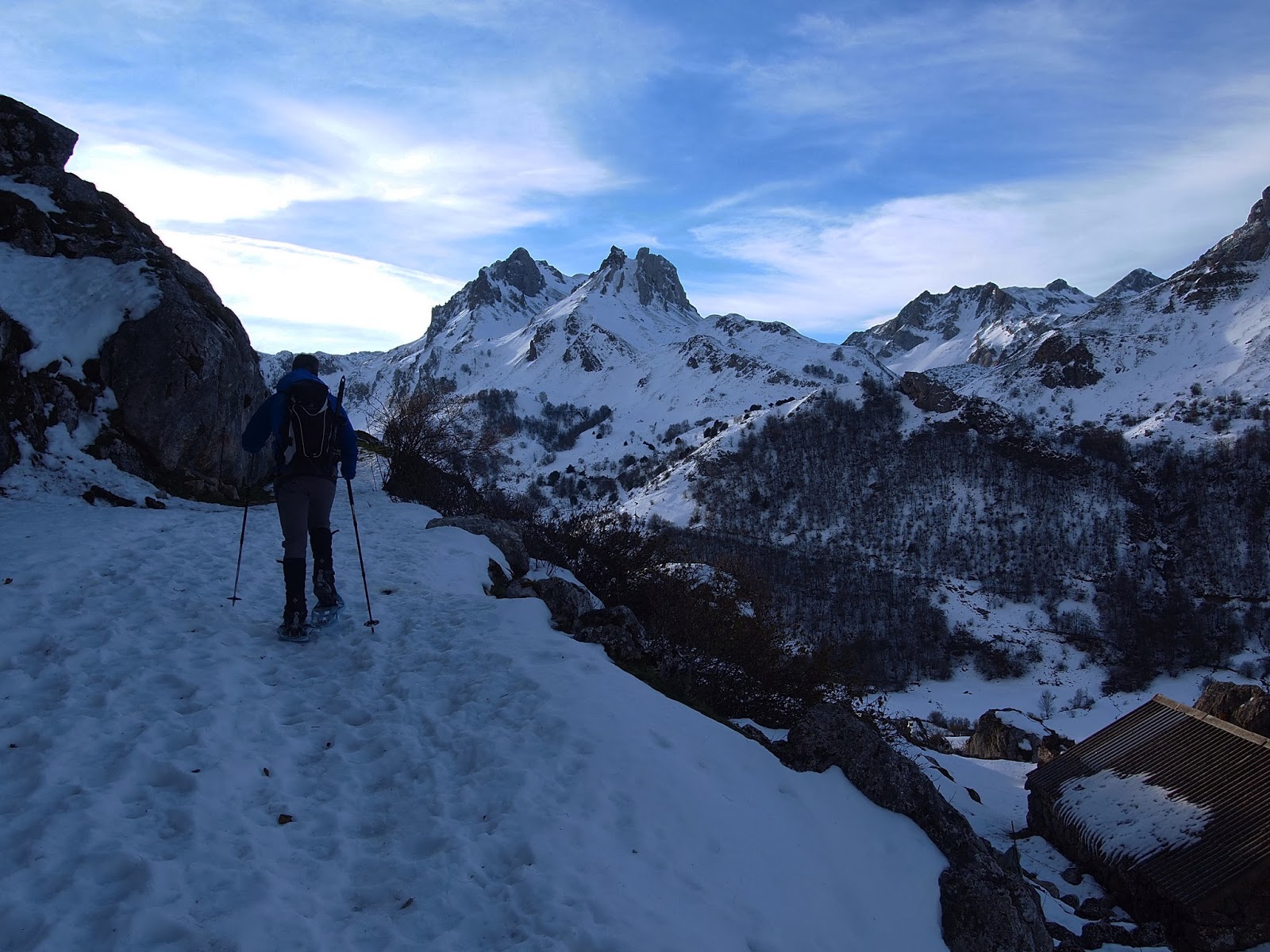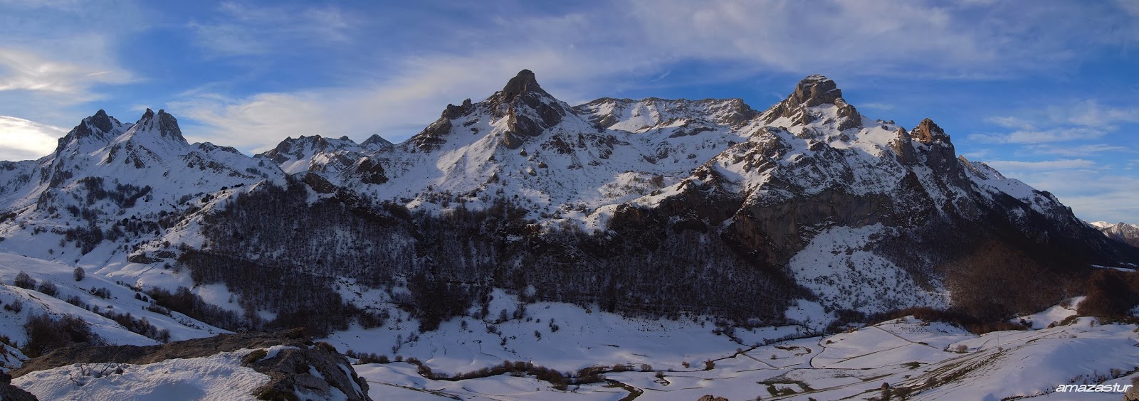 los picos albos se convierten en todo un clásico invernal en cuanto aparece la nieve en la cordillera, será por los paisajes que los rodean y por las diferentes variantes que tienen para su ascensión, el caso es que en esta ocasión nos fuímos hasta valle de lago ( somiedo ) para desde allí y a través de la braña de sobrepena llegar hasta la amplia vega de camayor y tras atravesarla y pasar a media ladera por la cara N. de la peña la llávana encaminarnos hasta el albo occidental por su cara O.