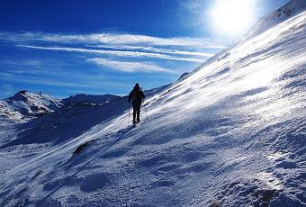 rápido descenso hacia el canalón, pués la ventisca casi impedia estar de pié en la cima