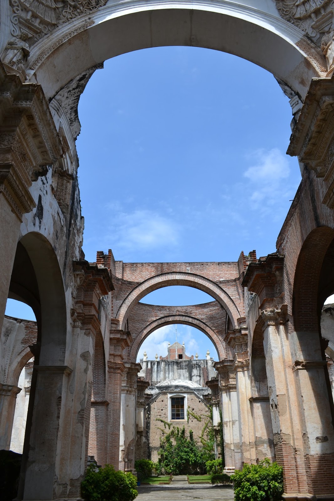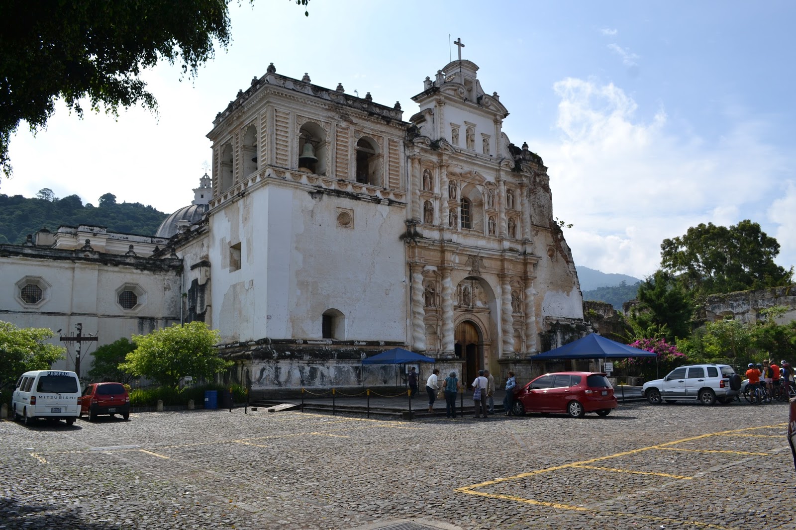 - Recorriendo la ciudad con Leonelito:Leonel organizó todo un recorrido para ahondar en la historia y tradiciones de la Muy Noble y Muy Leal Ciudad de Santiago de los Caballeros de Guatemala, más conocida hoy como Antigua. La ciudad desde la memoria colectiva se relaciona indefectiblemente con el pasado colonial y omnipresencia del catolicismo,que marca casi todas sus tradiciones, siendo imposible sustraerse al caminar por la ciudad de las imágenes de las procesiones sobre las calles engalanadas al máximo y las alfombras de flores por las que transportan al Nazareno cada año en Semana Santa.En esa clave partimos el recorrido siguiendo el Vía Crucis y todas sus estaciones.Empezamos por la Iglesia de San Francisco el Grande, que data mediados del siglo XVI, pero como toda la Antigua, tiene varias edificaciones y adiciones posteriores a los grandes terremotos, siendo la actual edificación de 1967 aproximadamente.Es bien conocida porque ahí se encuentra la tumba de Pedro de San José de Betancourt, elprimer santo centroamericano y sujeto de gran devoción y su árbol Esquisuchil, cuyas flores, dicen tener cualidades milagrosas.Justo al frente se encuentra el Lavadero del Tanque de La Unión, que data de 1853 y fue levantado como lavadero público, por cuanto no todas las casas contaban con espacio para lavar. Leonel decía que era el Facebook de la época, porque eran verdaderos centros de reunión para las mujeres, que aprovechaban de enterarse de todas las novedades del vecindario. Volvimos al Parque Central, donde todo ocurre, frente al edificio del Ayuntamiento, que también se puede visitar.Luego nos detuvimos en la Catedral, que está reconstruida, en la actualidad y donde descansa todo el año la figura de Jesús Nazareno y los estandartes de todas las cofradías, encargadas de su cuidado y conservación.En la parte posterior, está la antigua iglesia en ruinas, con vestigios de una gran nave central, pero también de las dependencias de la cocina y comedor del convento Franciscano.Caminamos la ciudad en busca de nuevas postales, recorriendo la más fotografiada 5° Avenida o Calle del Arco, que como ya había contado en el post anterior, es una de las postales más admiradas de la ciudad, de ida (por los colores) y de regreso (por la vista al volcán que preside toda la ciudad), con lluvia o con sol.