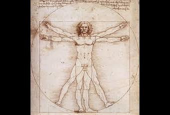 “… y también el ombligo es el punto central natural del cuerpo humano, ya que si un hombre se echa sobre la espalda, con las manos y los pies extendidos, y coloca la punta de un compás en su ombligo, los dedos de las manos y los de los pies tocarán la circunferencia del círculo que así trazamos. Y de la misma forma que el cuerpo humano nos da un círculo que lo rodea, también podemos hallar un cuadrado donde igualmente esté encerrado el cuerpo humano. Porque si medimos la distancia desde las plantas de los pies hasta la punta de la cabeza y luego aplicamos esta misma medida a los brazos extendidos, encontraremos que la anchura es igual a la longitud, como en el caso de superficies planas que son perfectamente cuadradas”.