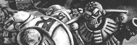 Como nota curiosa,hay una novela de los Fantasmas de Gaut(Necropolis?),donde este legendario comisario y sus hombres se enfrentaba a algo por el estilo a estos androides,pero no tengo claro si eran Necrones o Androides del Caos.Igual Dan Abnet les hizo un homenaje.