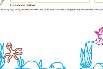 Actividad a realizar: Recorta y pega las figuras de los animales marinos. Explica a tu maestra por qué pusiste a los animales marinos de esa manera.