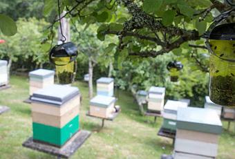 Trampas para avispas velutinas asiáticas en una colmena de Portodemouros (Pontevedra). ÓSCAR CORRALCuanto más se sabe del comportamiento de la avispa asiática (vespa velutina) —que ya ha causado dos muertes en Galicia este verano—, menos esperanzas parecen abrigar los apicultores para combatir esta especie asentada en la región desde 2012 y que ha causado estragos entre los individuos de sus colmenas para conquistar su hábitat. Pero este insecto no solo es una amenaza para las abejas autóctonas productoras de miel, sino para la población, ante la proximidad de sus nidos a viviendas y huertos.El presidente de la Asociación Galega de Apicultura (AGA), Xesús Asorey, ha reclamado a la Xunta de Galicia medios de investigación y más información a los ciudadanos, y cree que llegó el momento de apostar por armas biológicas, como las feromonas, para combatir este insecto. El portavoz de los apicultores gallegos ha avisado de que estas avispas procedentes de Asia han cambiado su comportamiento para adaptarse a las condiciones climáticas.Marcos González, profesor de Zoología de la Universidad de Santiago, también opta por esta propuesta como única arma para frenar la proliferación de esta especie que ha calificado de “plaga e invasión”. Para este experto, la alarma social emergente “está plenamente justificada”.