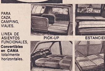 Modelos que era muy espartanos en sus equipamientos. Pero también se ofrecían asientos cama para un vehículo como la Estanciera que fabricó la automotriz IKA(Industrias Kaiser Argentina SA), o el Ford Falcon de Ford Motor Argentina.