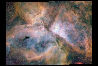 Las imágenes revelan la luz de una explosión masiva de estrellas en la Nebulosa de Carina se refleja en las nubes de polvo que rodean a un monstruoso sistema doble estelar, un fenómeno llamado eco de luz. El color de la imagen de la izquierda muestra la Nebulosa Carina, una región de formación estelar situada a 7500 años luz de la Tierra. Eta Carinae reside en la parte superior de la imagen. El sistema doble, alrededor de 120 veces más masivo que el Sol, produjo una explosión espectacular que fue visto en la Tierra desde 1837 hasta 1858. Pero parte de la luz procedente de la erupción realizó un camino indirecto y acaba de llegar a nuestro planeta. La luz difusa de nubes de polvo (la franjaa de unos 100 años-luz de distancia en la parte inferior de la imagen) fue desviada a la Tierra. La imagen fue tomada por el telescopio de 4 metros de diametro del U.S. National Optical Astronomy Observatory.