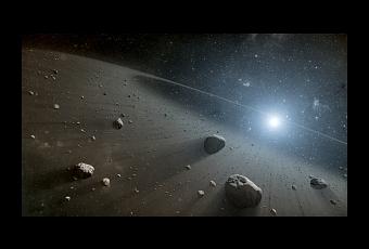 De acuerdo con el modelo más aceptado, las pequeñas partículas de polvo en el disco giratorio que rodeaban al Sol chocaron y se fusionaron para formar partículas más grandes gradualmente. Este proceso finalmente construyó planetas enanos en el cinturón de Kuiper, como Plutón, así como la Tierra y otros planetas rocosos del Sistema Solar interior.