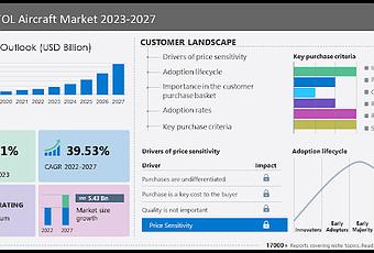 Se espera que el tamaño del mercado de aviones EVTOL crezca 5.430 millones de dólares entre 2022 y 2027. Sin embargo, el impulso de crecimiento del mercado progresará a una tasa compuesta anual del 39,53% durante el período previsto. . El mercado está segmentado por Aplicación (Carga y Pasajeros), Tecnología (Ascensor más crucero, Multirotor y empuje vectorial) y Geografía ( Europa , América del Norte , APAC, Medio Oriente y África , y América del Sur ).