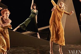 Las top Kaitlyn Aas, Karen Elson, Jamie Bochert o Julia Nobis emulan poses de bailarina que se centran principalmente en el movimiento de los brazos, dando movimiento a los vestidos de corte romántico en tonos beige, negro y verde, los ¿¿modelos - bailarines??? masculinos en mallots de ballet negro.