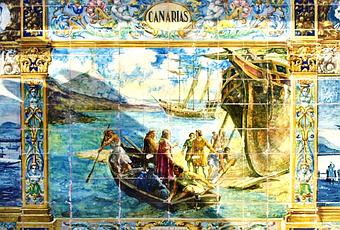En el friso central está representada un tondo y en su interior el nombre rotulado de Canarias. Los bancos están decorados con elementos vegetales y roleos con parecida composición. Todos ellos tienen en el centro un tondo, y en su interior aparecen paisajes, y monumentos arquitectónicos de las Islas; en dos de ellos se representan torsos de putti y cuernos de la abundancia formando roleos.