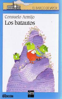 Son verdes, "con orejas al principio de la cabeza y pies al final del cuerpo". Son extraños, quizá sean de Marte o de Júpiter, pero han venido a hacernos reír y disfrutar con sus aventuras. Se trata de seres extraordinarios que se mueven por el libro a golpe de situaciones absurdas. Armijo se aleja de la lógica racional para jugar con la fantasía y el humor, con la insensatez y el sinsentido. Ángel Esteban es el ilustrador. Sus dibujos muestran personajes con cara redonda y risueña, que se mueven como si una cámara fotográfica les estuviera espiandoAquí donde me ves, yo no fui una niña lectora. Leí muy poco de pequeña (en parte, porque mi padre me lo prohibía, la yo le he contado alguna vez), así que no tengo un gran bagaje de libros imprescindibles de la infancia. El que tengo lo he ido haciendo a posteriori, desde la edad adulta... y creo que no es lo mismo. Pero este sí es uno de mis libros de niña, sí es uno de los libros que leí y disfruté. De hecho, es uno de los libros que más leí: mi profesora de cuarto de EGB, además de mandárnoslo como lectura obligatoria, lo utilizaba como texto para hacer dictados, así que pasé mucho tiempo aquel curso con Peluso, Buu, Gusi y Erito. Cuando vi que había lotes para leer en los clubes de lectura infantiles, no me lo pensé y así es cómo me reencontré con los batautos, treinta años después Y, la verdad, creo que los batautos y sus batautadas no han perdido eficacia en este tiempo. En esta relectura, que casi casi ha vuelto a ser una lectura, porque tenía impresiones pero poco recordaba de las aventuras de estos bichejos verdes tan divertidos, he vuelto a disfrutar y he vuelto a reírme y a emocionarme y a empatizar con estos seres tan distintos y, sin embargo, tan parecidos a nosotros. Absurdos pero entrañables, los batautos nos hablan de la capacidad de ponerse en la piel del otro, de convivencia, de compresión, de cariño, de amistad y de aceptar al otro tal cual es, con sus virtudes y sus defectos. Al grupo de 9-10 años también le gustó mucho conocer a estos batautos que tan buenos ratos nos han dado. De hecho, hemos hablado mucho sobre amistad, sobre qué le pedimos a los amigos y qué estamos dispuestos a dar a cambio, de si perdonamos a quienes nos quieren o qué llegaríamos a hacer por ellos. Como remate a las sesiones, nos reinventamos como batautos y hasta nos hicimos en plastilina.