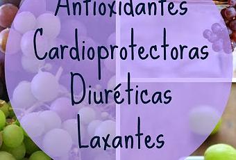 La uva es una fruta ideal para las personas de todas las edades, y no sólo en esta época, en la que las compramos para cumplir con la tradición de tomar las 12 uvas al finalizar el año. Las sustancias protectoras presentes en las uvas (flavonoides, incluyendo la quercetina, la catequina y la antocianina) favorecen el buen estado de las arterias aumentando el óxido nítrico en sangre y otros efectos metabólicos favorables. Además, La uva se ha asociado con una mejor salud cerebral y se cree que protege contra enfermedades neurológicas agudas y crónicas. También encontramos resveratrol en las uvas. Algunas investigaciones recientes indican que este compuesto químico tiene la capacidad de incrementar la expresión de tres genes en el cuerpo humano que están relacionados con la longevidad. Por lo que se supone que la uva podría ayudar a desacelerar el proceso de envejecimiento. Las uvas tienen un 1% de fibra vegetal (pectina) lo que las convierten en un laxante eficaz. En caso de estreñimiento o problemas de movilidad intestinal se recomienda consumir las uvas sin pelar y con pepitas, ya que son en éstas donde se encuentran las sustancias que equilibran la flora intestinal y ayudan a regular su funcionamiento. Tienen propiedades diuréticas por lo que son muy adecuadas en casos de insuficiencia renal. Las uvas actúan como desintoxicantes del hígado, aumentando la producción de bilis y mejorando problemas hepáticos. Además, los ácidos orgánicos de las uvas alcalinizan la sangre y ayudan a eliminar el ácido úrico mejorando problemas como la artritis o gota. En vista de estas excelentes propiedades, ¿porqué limitar su consumo a las 12 uvas de Fin de Año? Por cierto, os dejo unas ideas muy creativas de Mamá Vitamina.