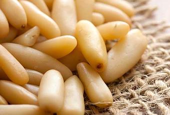 Métodos utilizados en la cosecha de piñones hacen una gran diferencia en su valor nutricional. Los piñones sin almendras se mantienen durante meses o años en el congelador. Las nueces de pino sin cáscara pueden ir rancia en tan sólo unos días si se exponen al calor o a la humedad. Sólo piñones coreanos contienen el ácido pinolénico que tiene un efecto sobre el control del apetito.