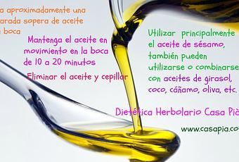 Requiere el uso de aceites puros como agentes para extraer bacterias nocivas, hongos y otros organismos de la boca, los dientes, las encías y hasta la garganta.
