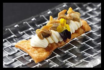 El chef José Miguel Santamaría innova una receta tradicional de Galicia aplicada en su origen a pescados y mariscos, y de ahí a los mejillones (escabeche rojo). Sobre un cracker artesano con masa de empanada gallega los berberechos escabechados se combinan con una crema a base de queso Idiazábal y calsots de temporada. Refuerza su sabor un vinagre balsámico de Jerez en reducción de cerveza Trapense ‘Trappistes Rochefort 10’.