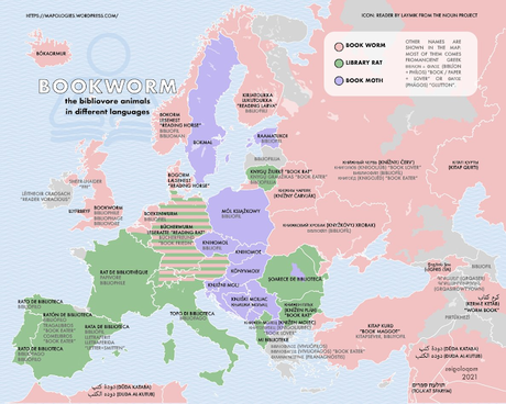 O cómo decir "ratón de biblioteca"(Dicese de una persona que suele pasar mucho tiempo dentro de las bibliotecas públicas, privadas o personales y que presenta una notable compulsión por la lectura,) en diferentes idiomas, gracias al blog http://mapologies.wordpress.com