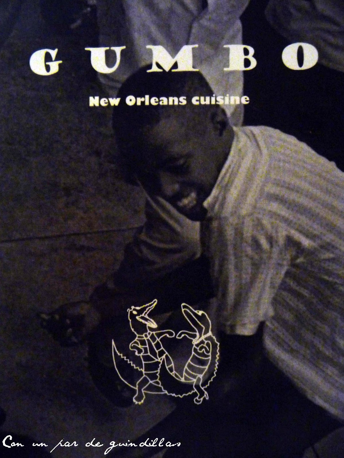 En la zona de Tribunal y, más concretamente, en la Calle Pez de Madrid, se concentra una gran actividad ocio-gastronómica y dentro de ella, desde hace ya muchos años, una referencia es Gumbo, un restaurante de comida tradicional de Nueva Orleans. Aclaremos, de Nueva Orleans, no de Estados Unidos, sólo de ésta zona del país.Es famosa esta cocina por sus aspectos criollos y cajún, por su mestizaje de culturas y continentes y no deja de ser un pequeño lujo poder degustarla en nuestra propia ciudad sin tener que viajar al otro lado del Atlántico. Al frente del negocio se encuentra Matthew Scott, un chef-propietario autodidacta con una formación inicial que poco tiene que ver con los fogones, puesto que es arquitecto. Resulta, además, que hace ya muchos años, cuando empecé a ver Canal Cocina, tenía un programa de cocina de Nueva Orleans, por lo que ya es un viejo conocido y de hecho no es la primera vez que acudimos a su local, pero sí la primera tras su remodelación. El local: Pequeño, siempre lleno, con mesas pequeñas y demasiado juntas a nuestro gusto, tiene, eso sí, el encanto y la familiaridad de un local de comidas, un cierto aire de local para compartir un buen momento rodeado de amigos un viernes por la noche y, lo mejor, una maravillosa música de jazz sonando al volumen justo e ideal para su disfrute y que no interfiera en la conversación. El servicio es muy bueno, con camareros rápidos, atentos y conocedores de su oficio. Por cierto, nos gustó muchísimo el diseño de la carta, mirad que portada más bonita.