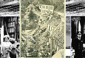 El colmo de la falta de escrúpulos ha quedado demostrado en un ataque nocturno contra un hospicio de Bethel junto a Bielefeld. Las terribles consecuencias: doce niños indefensos muertos y muchos otros heridos. La fotografía superior muestra una habitación destruida del hospicio. La fotografía de la derecha muestra a periodistas extranjeros viendo por sí mismos que decimos la verdad.Gott straffe England!