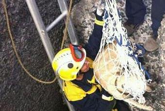 El can fue izado por los componentes del cuerpo de seguridad en el interior de una red. Aunque su estado era bueno, tenía síntomas de deshidratación. Junto a los bomberos actuó la Policía Local de Telde.