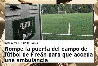 La seguridad y prevención en los campos de fútbol deja bastante que desear en algunos casos, como el que describe El Ideal Gallego. “Sería conveniente que los cuidadores de las instalaciones deportivas abran todas las puertas y no solo una cuando hay algún partido”, señalaba el concejal socialista José Luis Figueroa en el pleno de septiembre y mencionaba que los conserjes no tienen todas las llaves para ello. En la sesión de octubre, justificó la necesidad con una experiencia personal: “hubo que reventar la puerta porque hubo una emergencia y era necesario que accediese una ambulancia”.Recordó el edil sus palabras de hace un mes, tiempo en el que la situación sobre las llaves no ha cambiado. “Fue una urgencia y quien reventó la puerta fui yo”, continuó el edil, para relatar lo acontecido durante un partido de fútbol en el campo de Freán. Después de esperar 38 minutos por la ambulancia, parece que nadie estaba dispuesto a dar todo el rodeo por la carretera para llegar al muchacho hasta la ambulancia. Una situación que se podría haber evitado si el funcionario en cuestión tuviera las llaves de todas las puertas.Un jugador quedó tendido en forma de ovillo en el suelo e inmóvil por un fuerte dolor que, al parecer, habría sido provocado por una lesión del nervio ciático. “No podía moverse”, lamenta Figueroa que señaló que era imposible evacuar de otro modo al joven porque no se podía mover, “lo tuvieron que sacar del campo entre seis”. http://www.elidealgallego.com