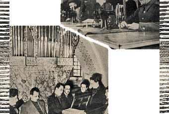 En el Castillo de Wulzburg, cerca de Weissenbug, Baviera, donde fueron tomadas estas fotografías, se encuentra un campo de prisioneros de guerra en el que la mayoría de los recluidos son británicos y franceses. En la fotografía superior se puede ver a algunos prisioneros fabricar artículos de ropa bajo la supervisión de un guardia alemán. En la fotografía inferior, el órgano proporciona entretenimiento durante las horas de ocio para aquellos que sea aficionados a la música.La mayoría de los prisioneros de guerra (todos, en realidad, salvo aquellos que hayan sido reunidos en grupos de trabajo al aire libre) residen en el interior de campos de prisioneros, de los cuales hay tres tipos distintos, conocidos oficialmente como Oflag, Stalag y Dulag, contracciones para designar Offizierslager, Stamlager y Durchgangslager, respectivamente. Los Oflag son campos para prisioneros con el rango de oficial, mientras que los Stalag son campos para soldados y suboficiales. Los Dulag son campos temporales, es decir, un campo al que tanto los oficiales como los soldados son llevados nada más ser capturados y donde se los clasifica antes de enviárseles a un Oflag o a un Stalag.