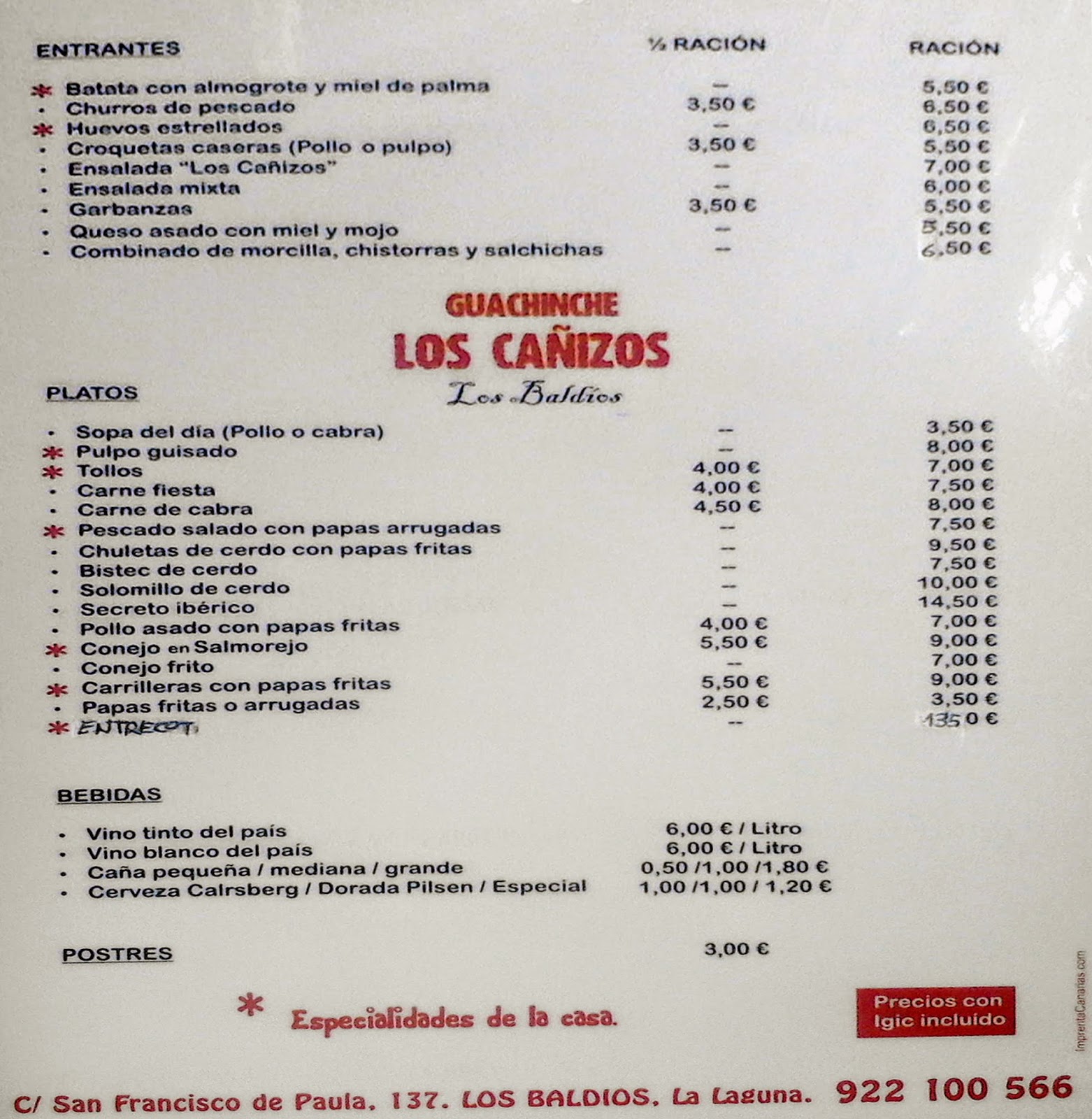 Recuerdo ver un "Guachinche Los Cañizos" hace tiempo, y, aunque no logro ubicarlo, no era aquí. Al pasar el otro día por la zona y ver el letrero, me llamó la atención, porque antes estaba en ese local el bar "Las Brisas", de donde guardo buenos recuerdos de ratos pasados,ya que en una época, por cuestiones de trabajo, paraba bastante por esa zona, y se comía buena comidita casera. Y ya que era hora de echarse algo al cuerpo en medio de la jornada laboral, paramos a ver que tal era, y de paso aparecer por aquí a contarlo.