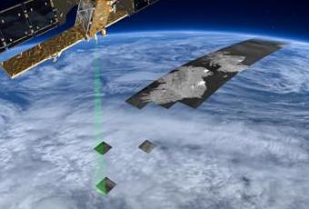 Recreación artística del satélite Sentinel-1 observando la Tierra. ESA