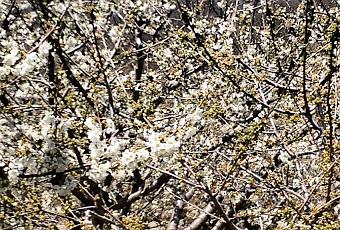 Pero es al llegar a la parte baja del puerto donde aparecen los cerezos en flor. Fascinante, con la sierra de Gredos, todavía nevada, al fondo. Y uno se dice, valió la pena, qué diablos. Esto sólo se ve una vez al año y este año, además, es especial por el frío y las nieves al fondo. Amigotes, ya sé que esta vez no llegáis, es tarde, pero el año próximo, si podéis, no os lo perdáis: