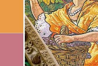 Su cielo, sus calles, los edificios antiguos, los adoquines de algunas calles, lo antiguo... y todo visto con un fondo azul. Azul cielo, bien bonito.Me da rabia no tener fotos propias, de las cosas chulas que veo por la calle... Supongo que pienso, que seguirán ahí cuando quiera volver a verlas.Por ésa razón, he buscado tres fotos en internet, muy bonitas, que muestran a la perfección lo que os decía. Y he creado la paleta de colores de estas fotos.La primera es un detalle de la fachada del Mercado de Colón. Es una belleza. Fue rehabilitad hace poco, y ya no funciona como tal, sino como zona comercial.Si vienes a Valencia, no dejes de visitarlo.